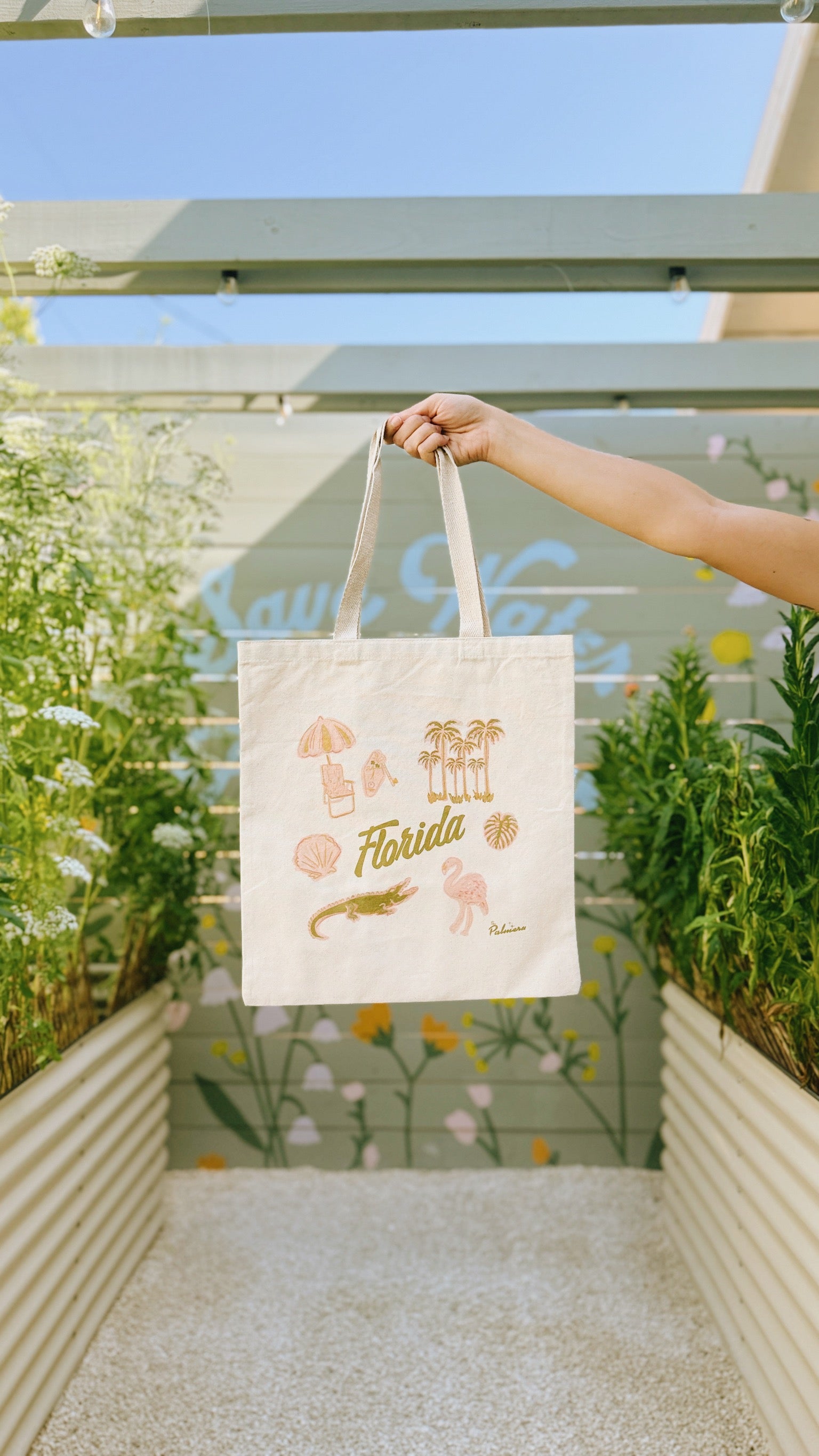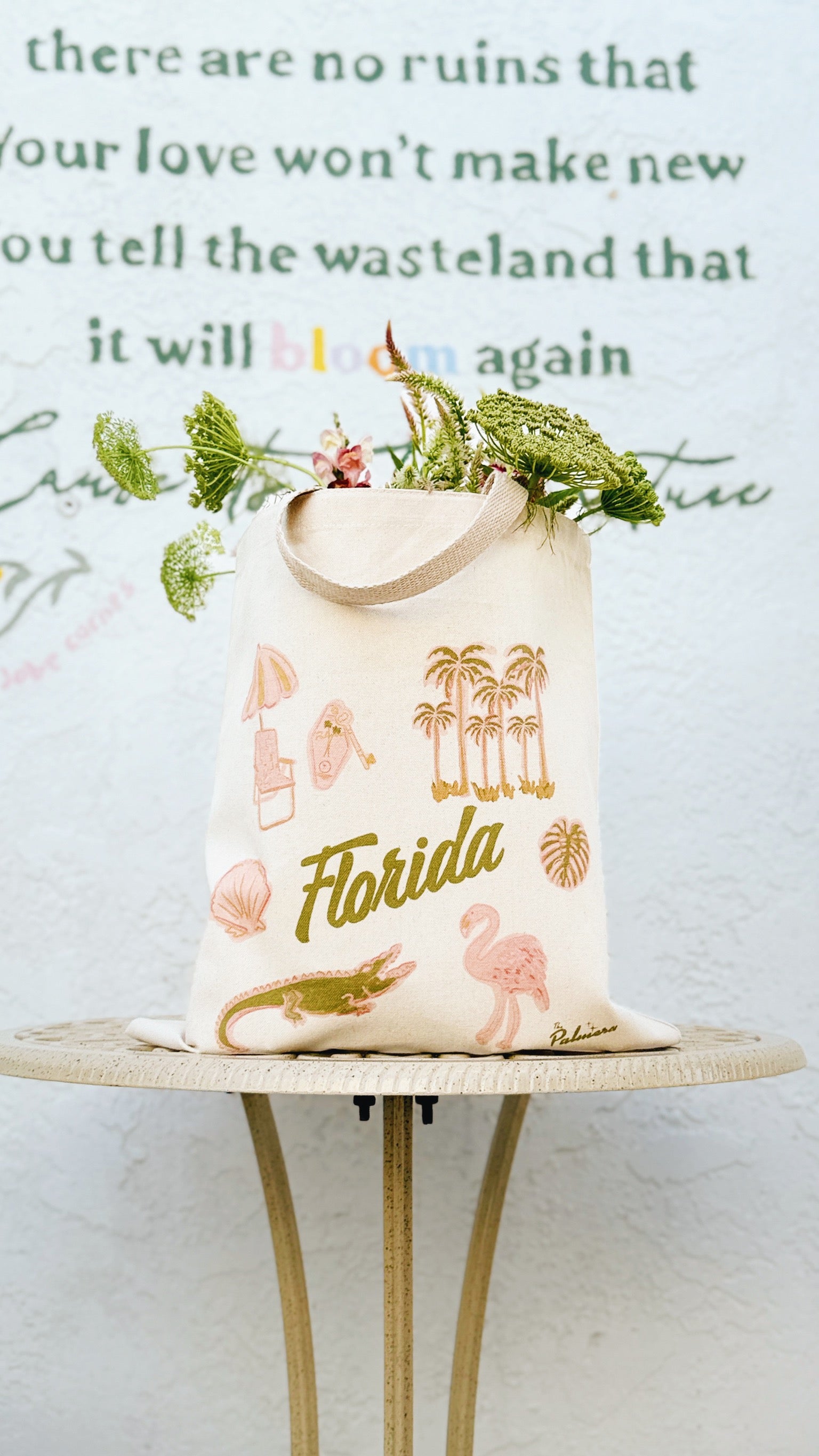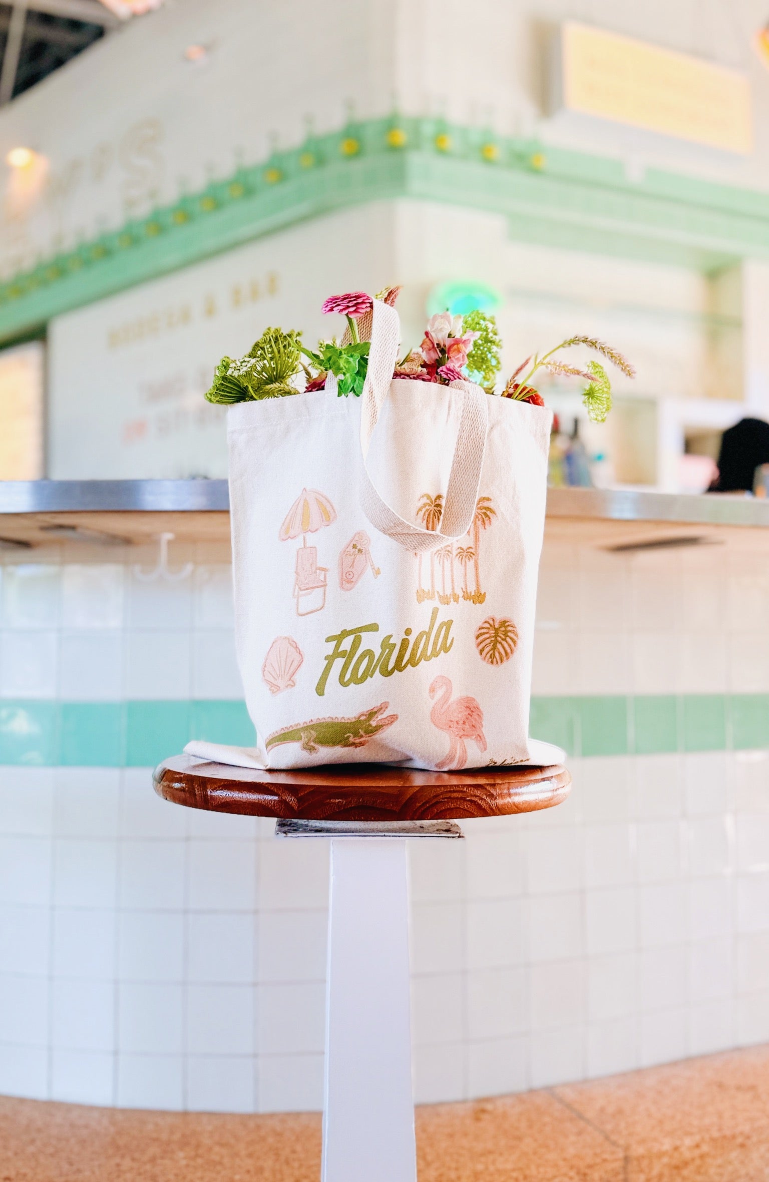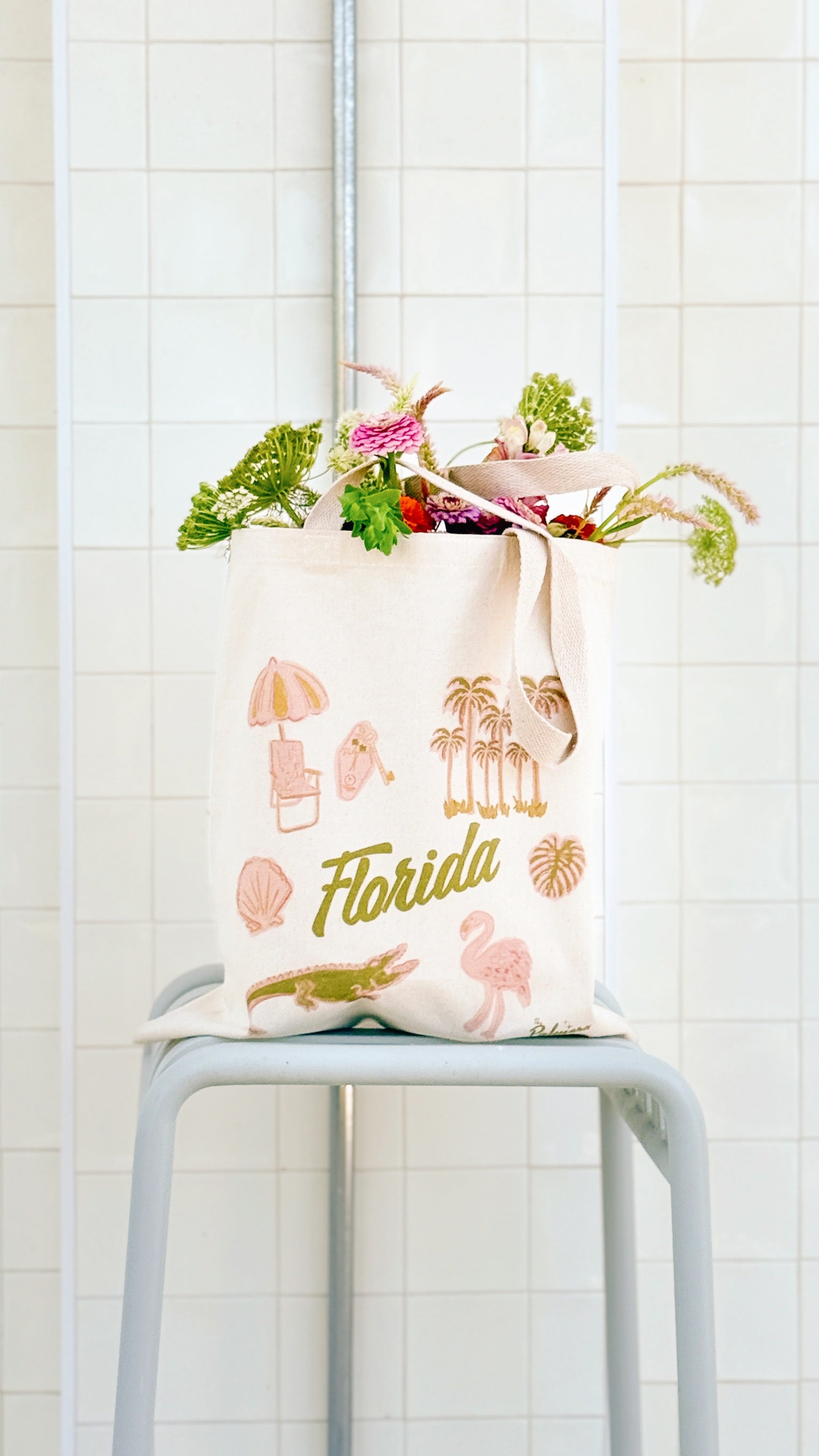 Our Florida Tote is a celebration of vintage tropical charm and all things Florida, crafted from durable canvas for everyday adventure."