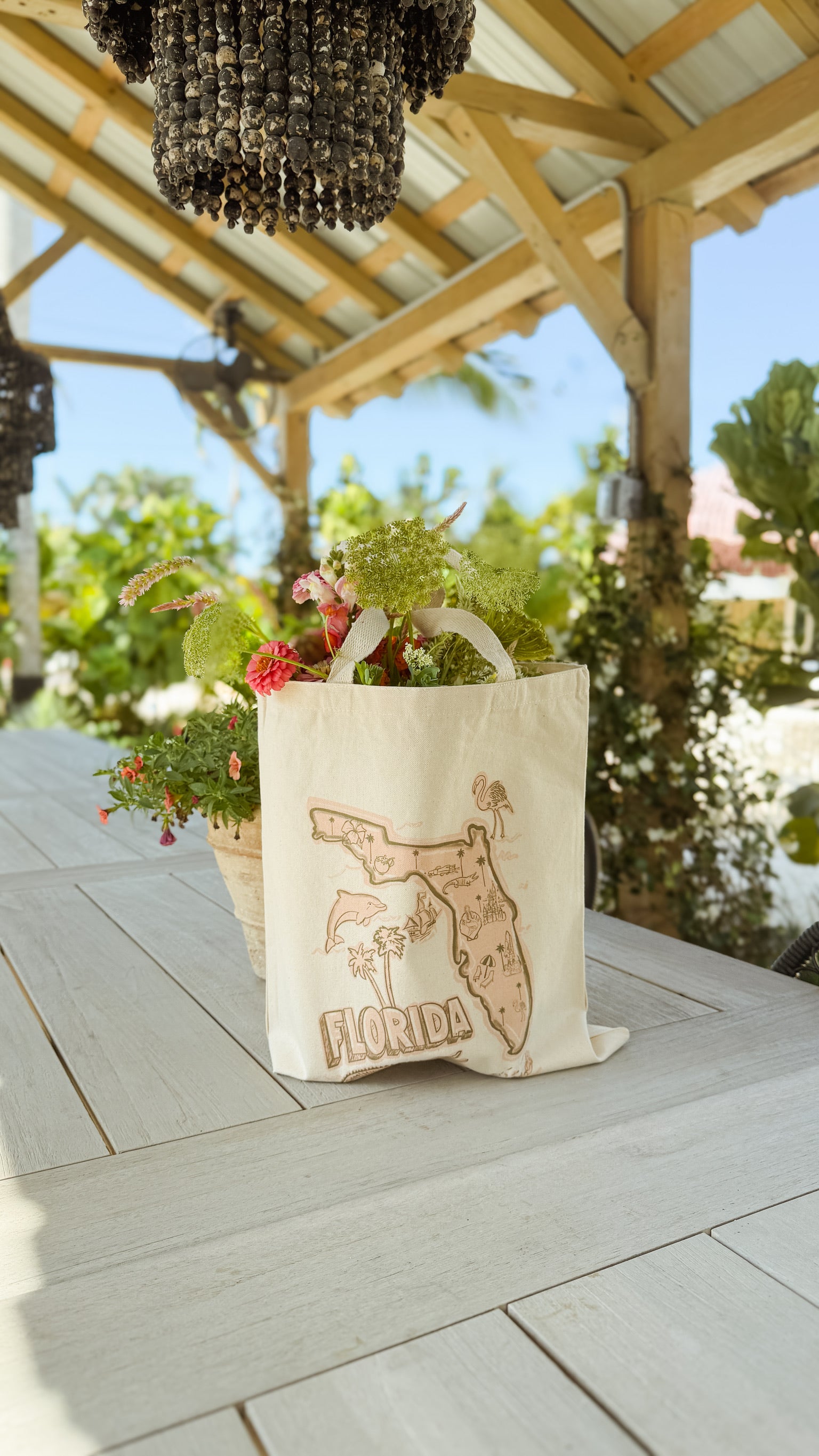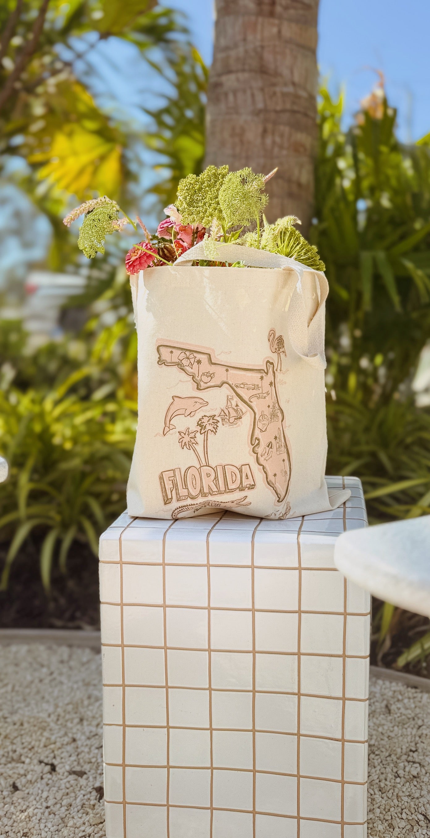 Our Florida Tote is a celebration of vintage tropical charm and all things Florida, crafted from durable canvas for everyday adventure."