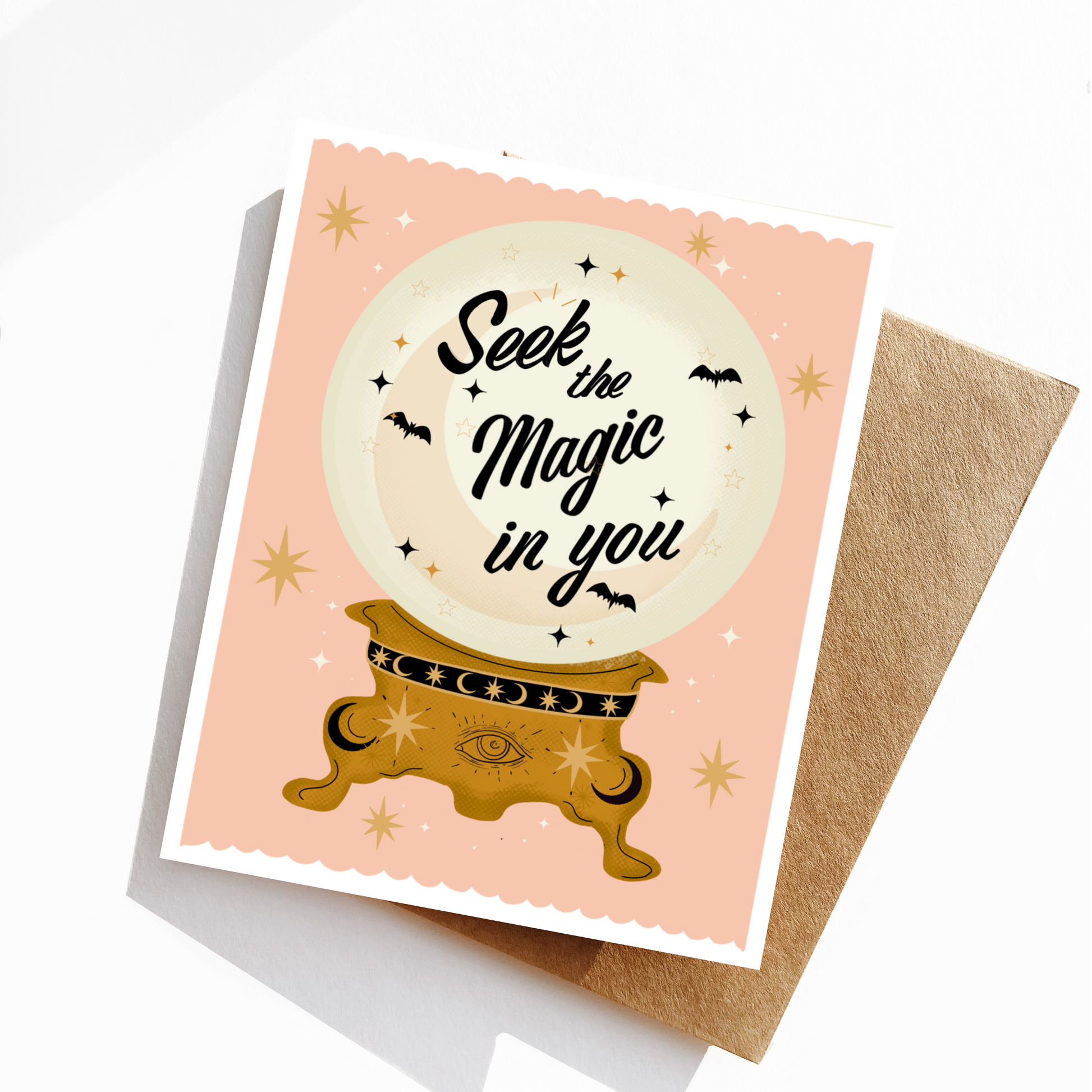 Whether you are sending a note of appreciation, a birthday wish, or simply a message to brighten someone's day, the "Seek The Magic In You" card is your perfect companion. It’s not just a card; it’s a vessel for your heartfelt expressions and a reminder to tap into the magic that lies within you.
